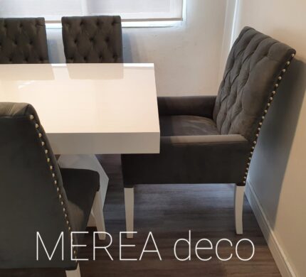 Rango de precios: desde $ 1.382.000,00 hasta $ 3.205.000,00Juego de Mesa Sofi 200 x 100 mts Brillante Pulido efecto cristal con 6 sillas y 2 sillones vera Capitoné