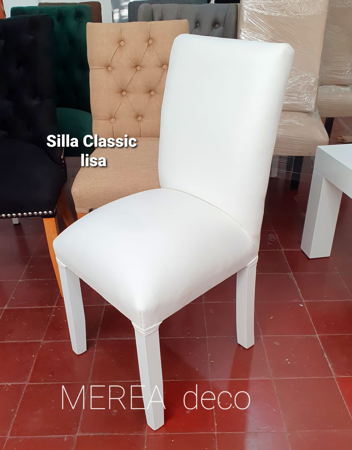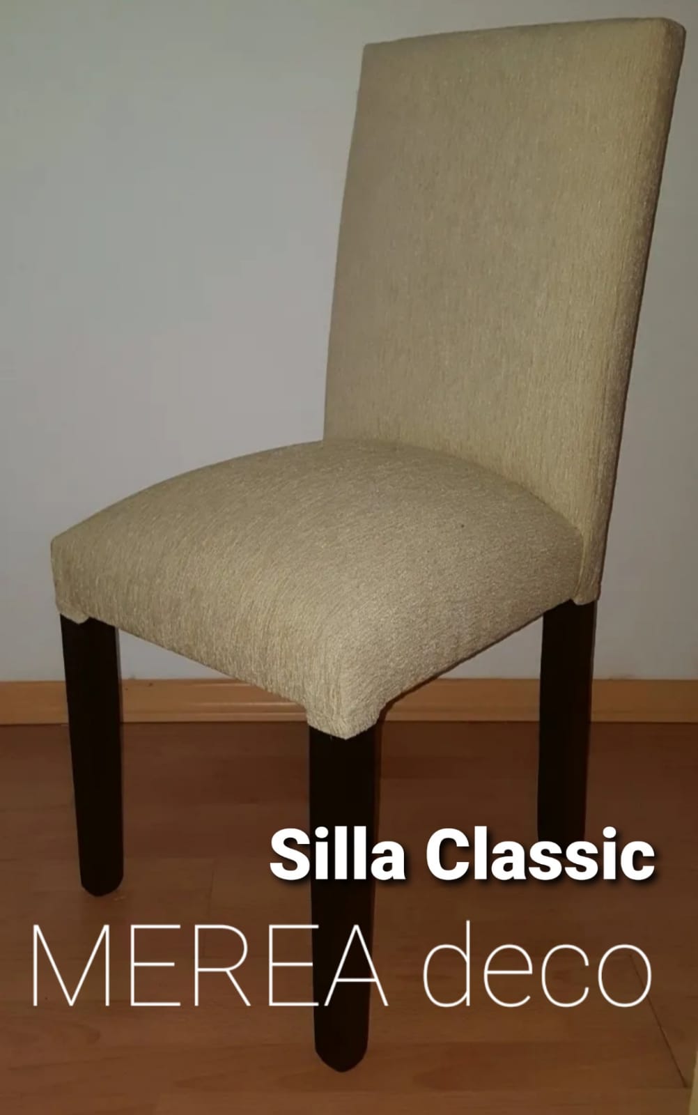 Silla Classic Lisa confeccionada en estructura de paraiso macizo atornillada y encolada, con doble sincha y goma espuma de alta densidad placa soft, tapizadas en lino, pana, chenille, ecocuero talampaya o ecocuero gamuzado. Variaciones de color de patas en blanco, negro o madera.